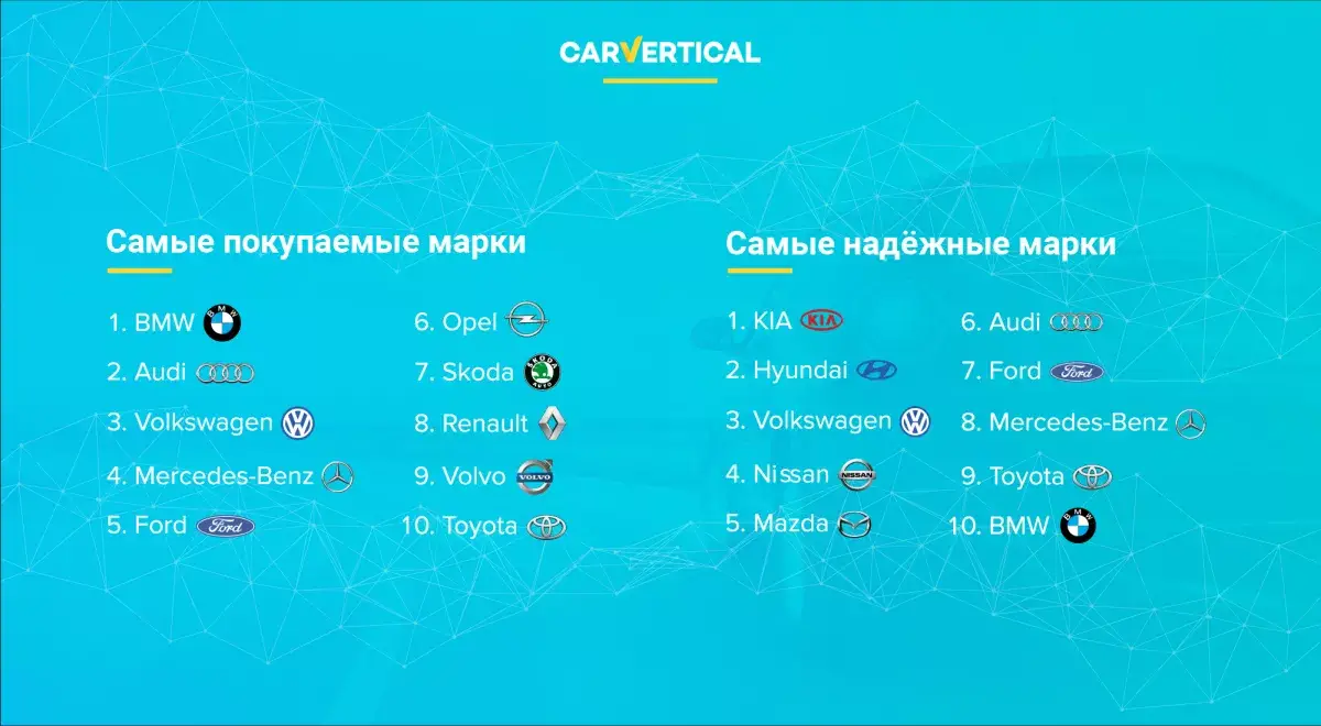 Итак, машины каких марок являются самыми надежными? Ниже вам представлен рейтинг надежности автомобилей согласно данным carVertical. Мы надеемся, что эти данные помогут вам принять обоснованное решение покупки автомобиля на вторичном рынке. Но сначала давайте кратко объясним процесс.